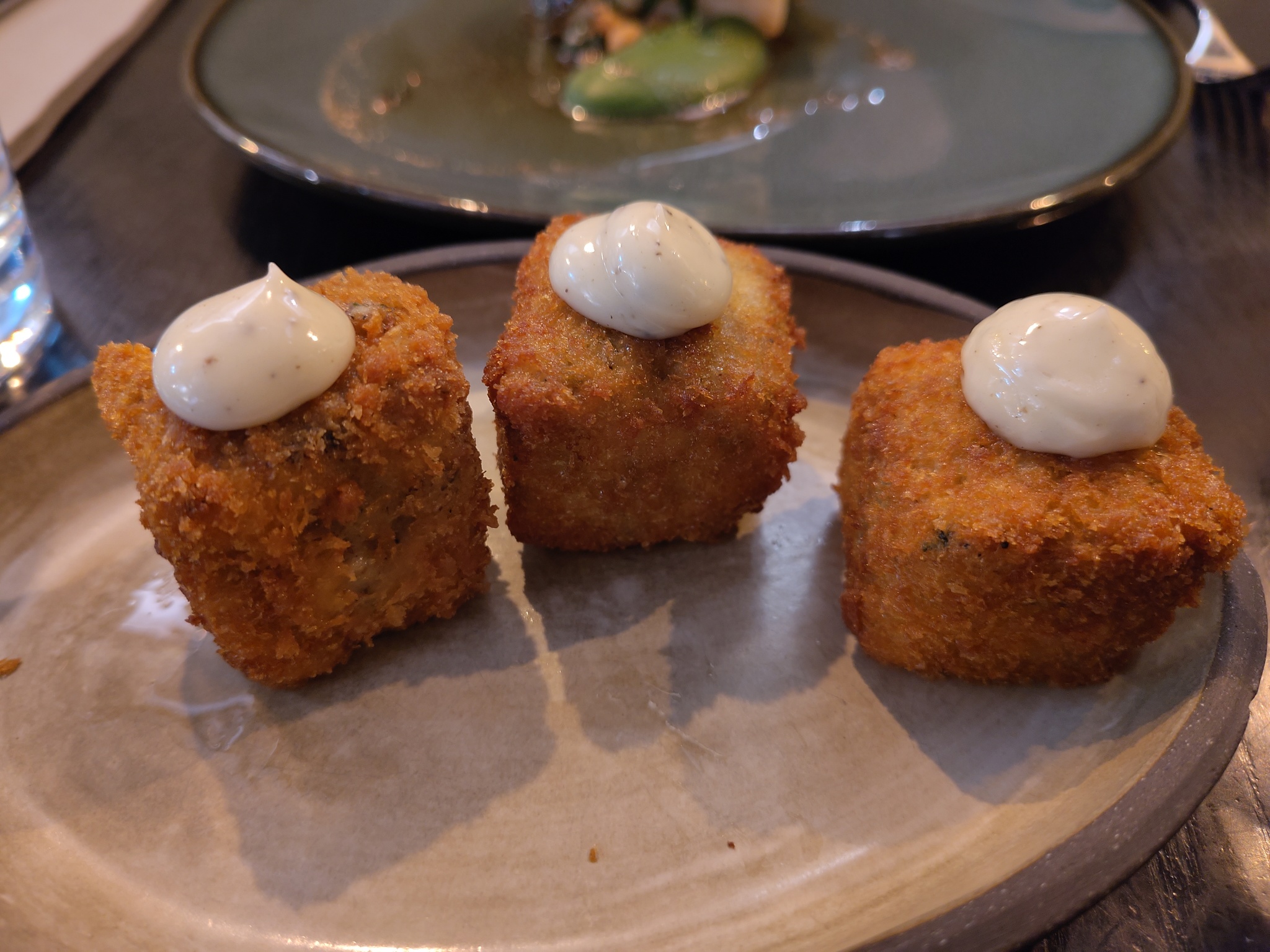 We sat in the upstairs part in the middle of a spacious room. After umming and ahhing about which dishes to pick, and whether to have any from the set menu, we decided on sharing the Truffled Mac & Cheese Croquettes to start. Three 1½ inch cubes, filled with mac & cheese showed up, slightly breaded and fried. They were nice, but they could have been a bit cheesier.