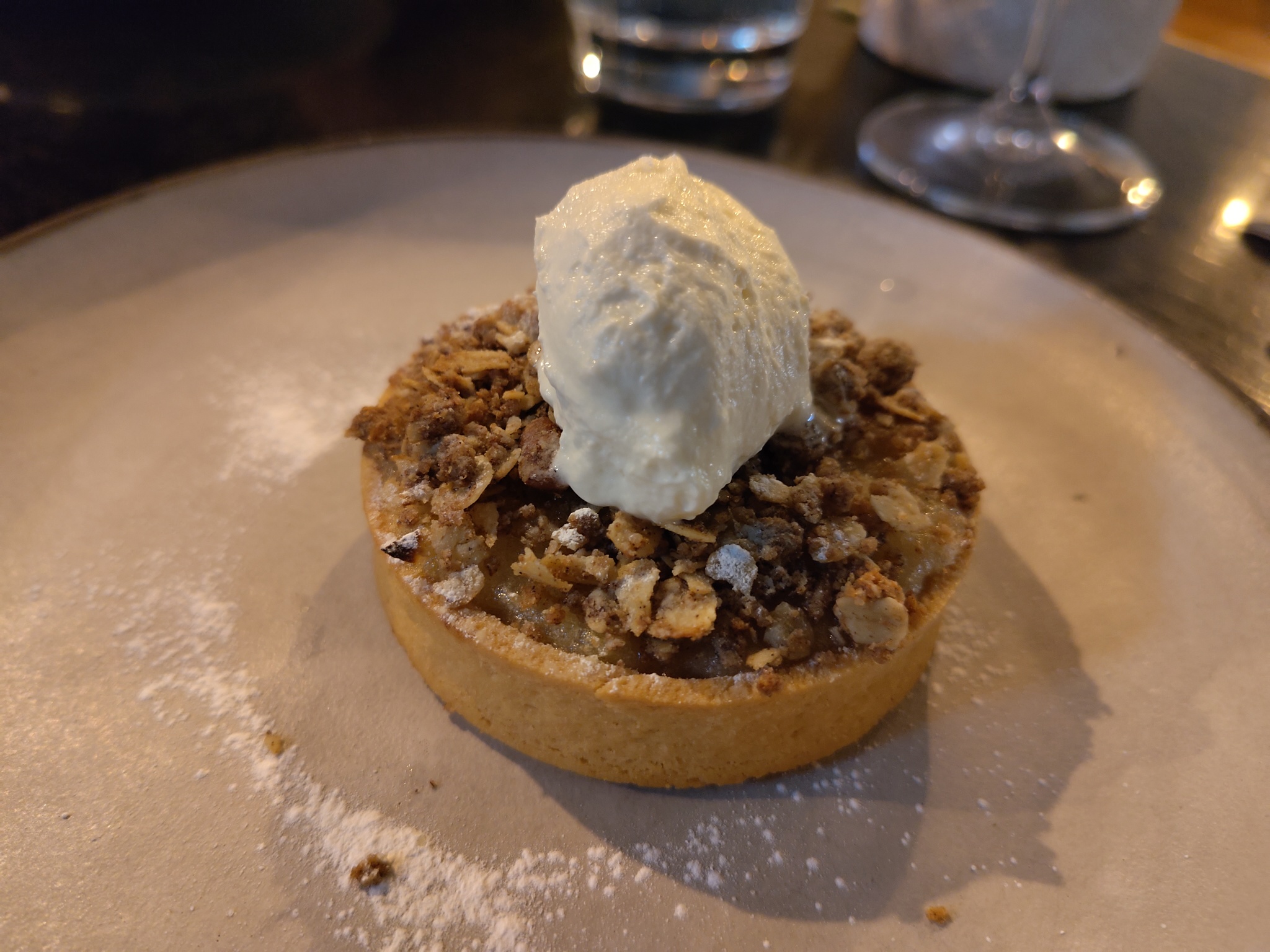 As we were still a little peckish, we also had a desert. My wife had a sticky toffee pudding, which was nice enough, but again a bit bijou. I had an apple crumble pie, which is just like an apple crumble, but then in a crispy pie case.